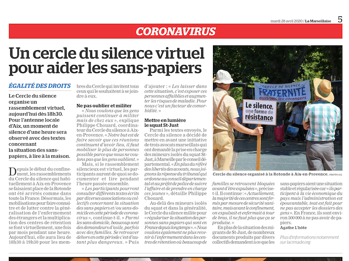 20200428 La Marseillaise : Un cercle de silence virtuel pour aider les sans papiers